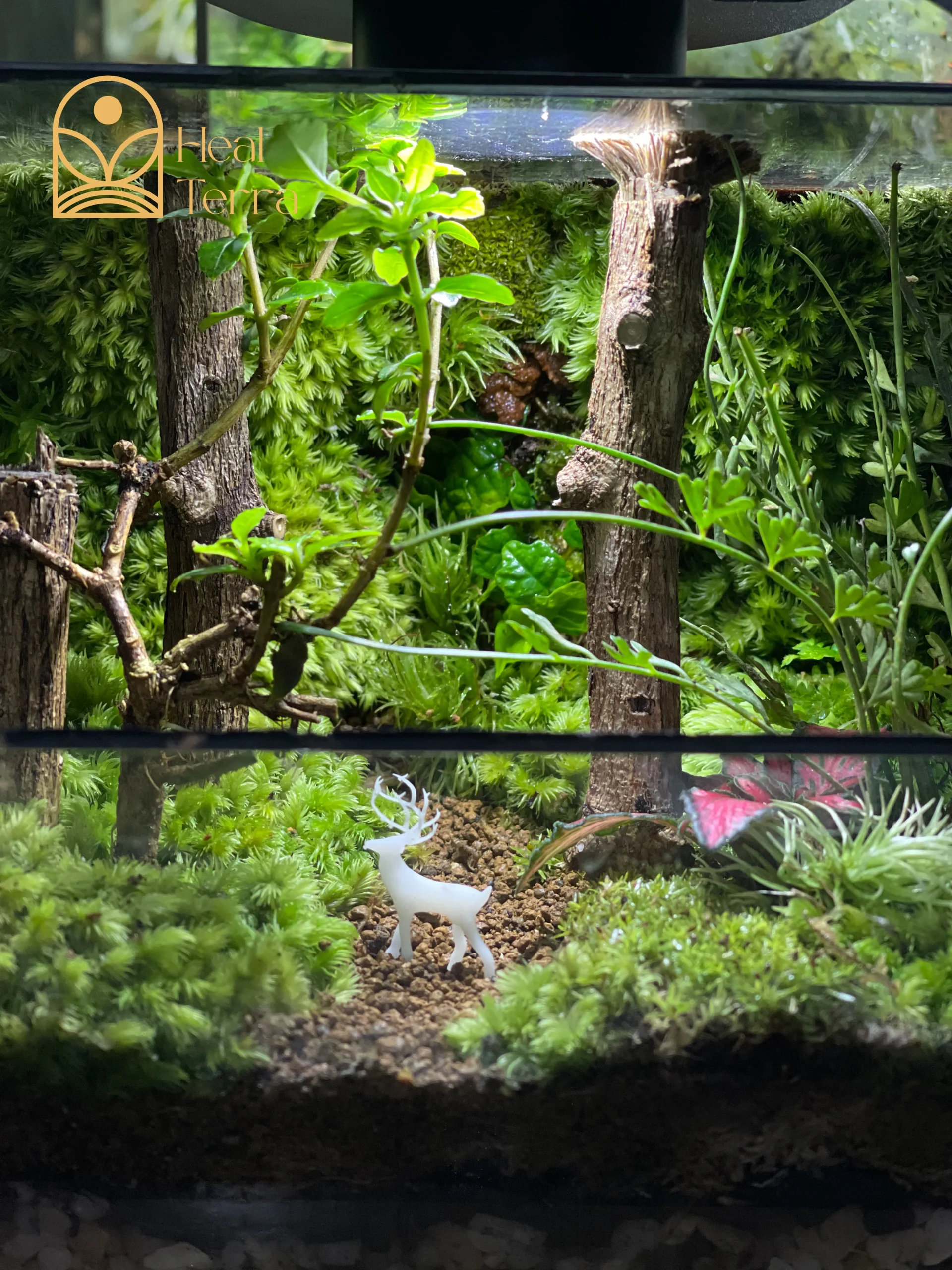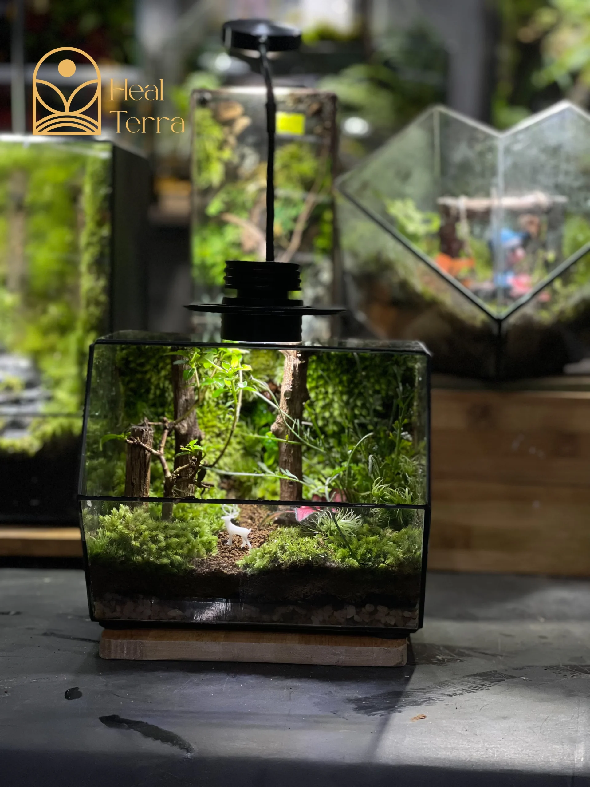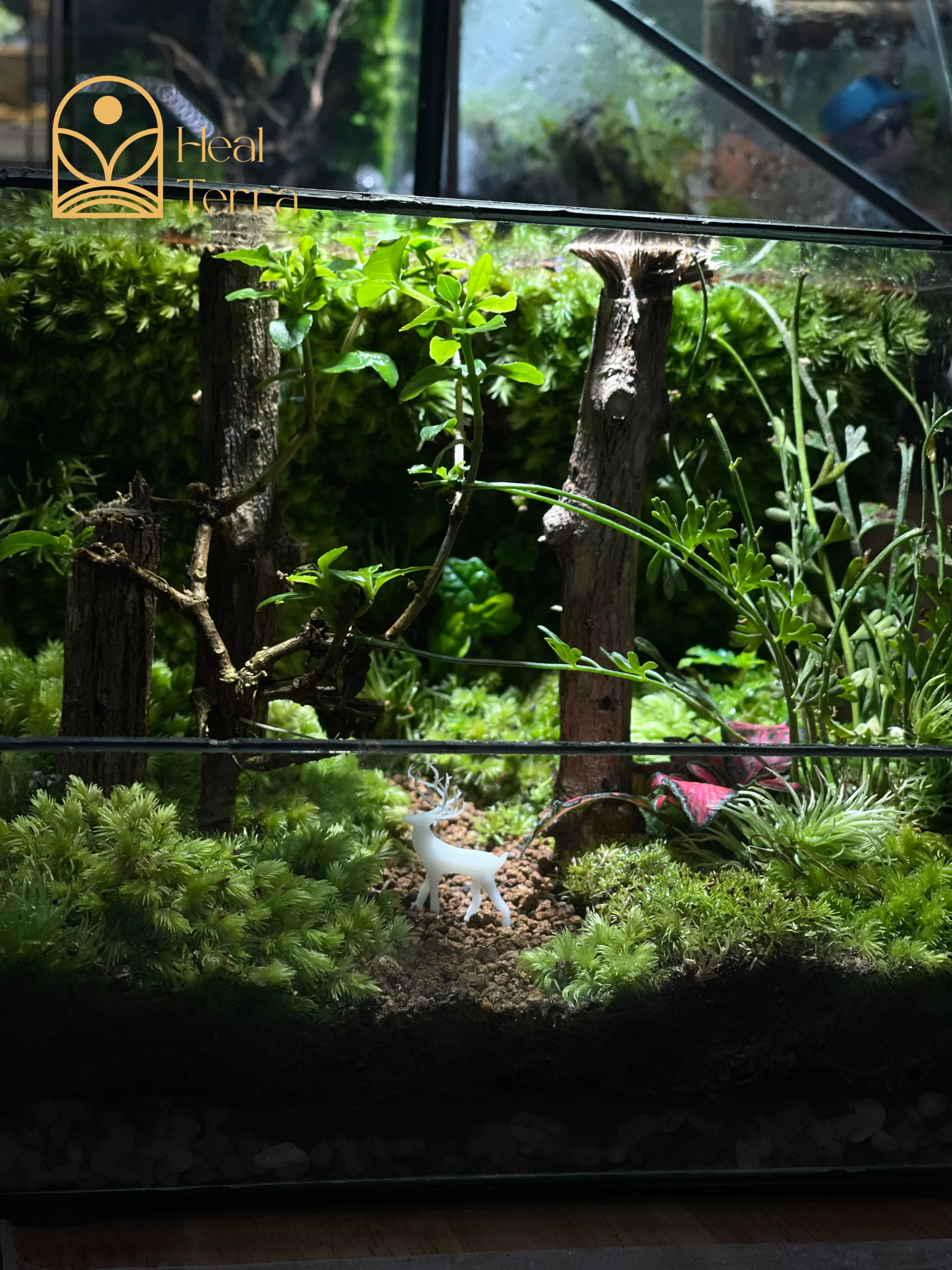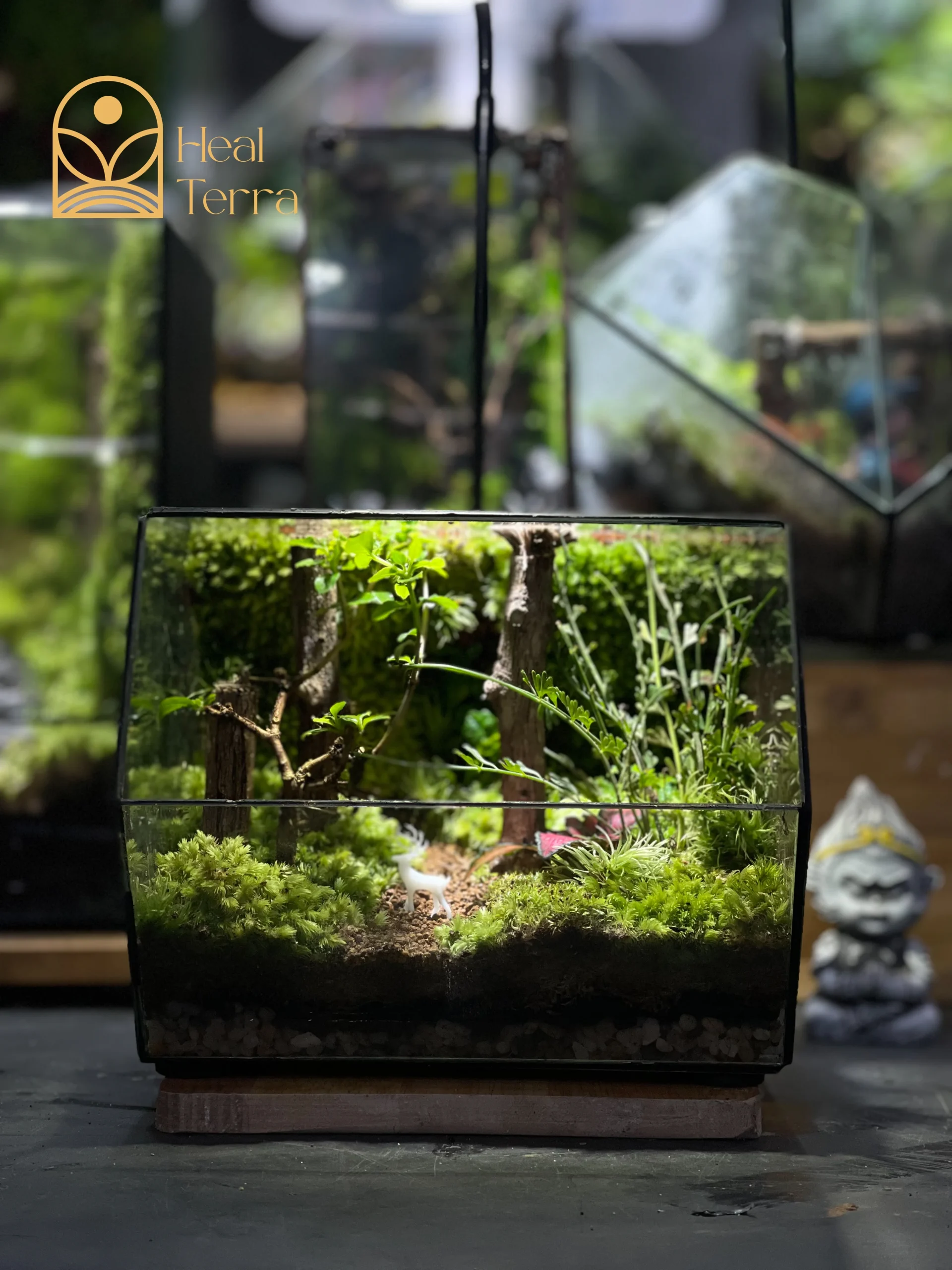 Khám phá “Hidden Path Terrarium” – hệ sinh thái kín mini với bố cục đa tầng tinh tế, ẩn chứa chú nai trắng bình an. Tác phẩm decor chữa lành hoàn hảo cho bàn làm việc nhỏ. Tự tuần hoàn hơi nước, cực dễ chăm. Freeship 3km tại HCM & Đà Nẵng, bảo hành bể vỡ 100%, xuất hóa đơn VAT nhanh chóng cho doanh nghiệp. Mua ngay tại Heal Terra!
