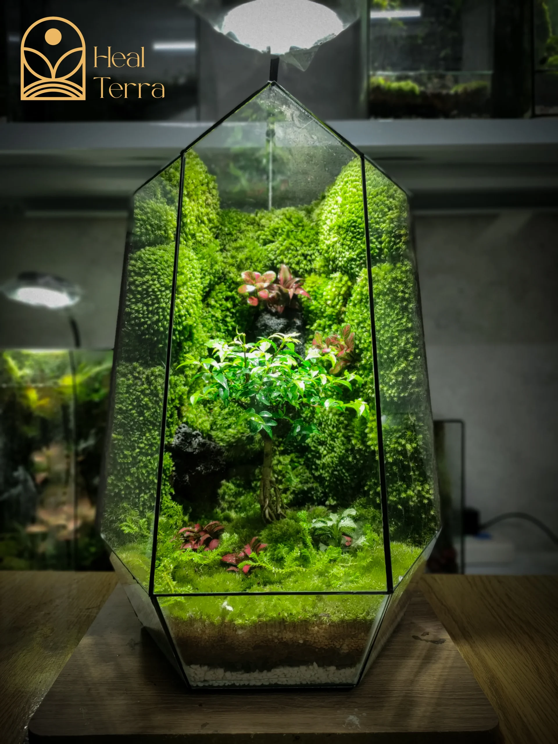 Có những khu rừng không nằm ở ngoài kia, nơi đại ngàn xa xôi. Chúng nằm bên trong mỗi con người, lặng lẽ và xanh mướt. Tác phẩm này được Heal Terra tạo ra từ một ý nghĩ rất đơn giản: Nếu một khu rừng có thể sống khỏe mạnh trong chiếc hộp kính nhỏ bé này, thì tâm hồn chúng ta cũng có thể được chữa lành theo cùng một cách như thế.
