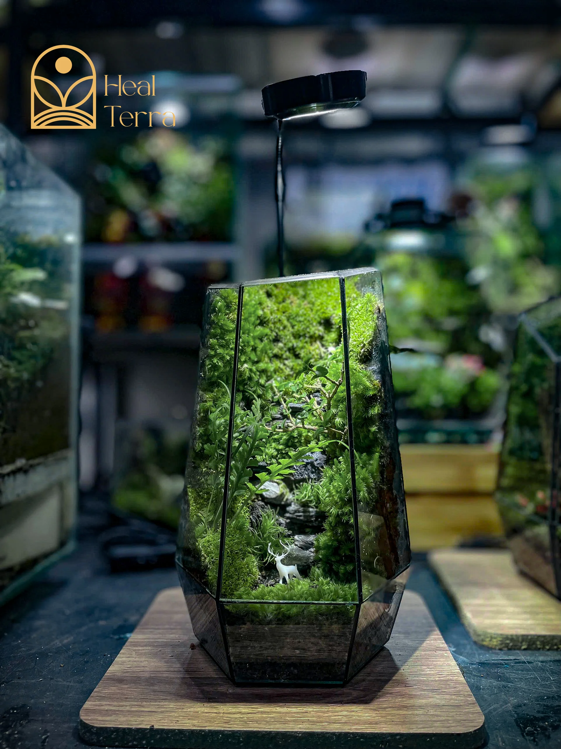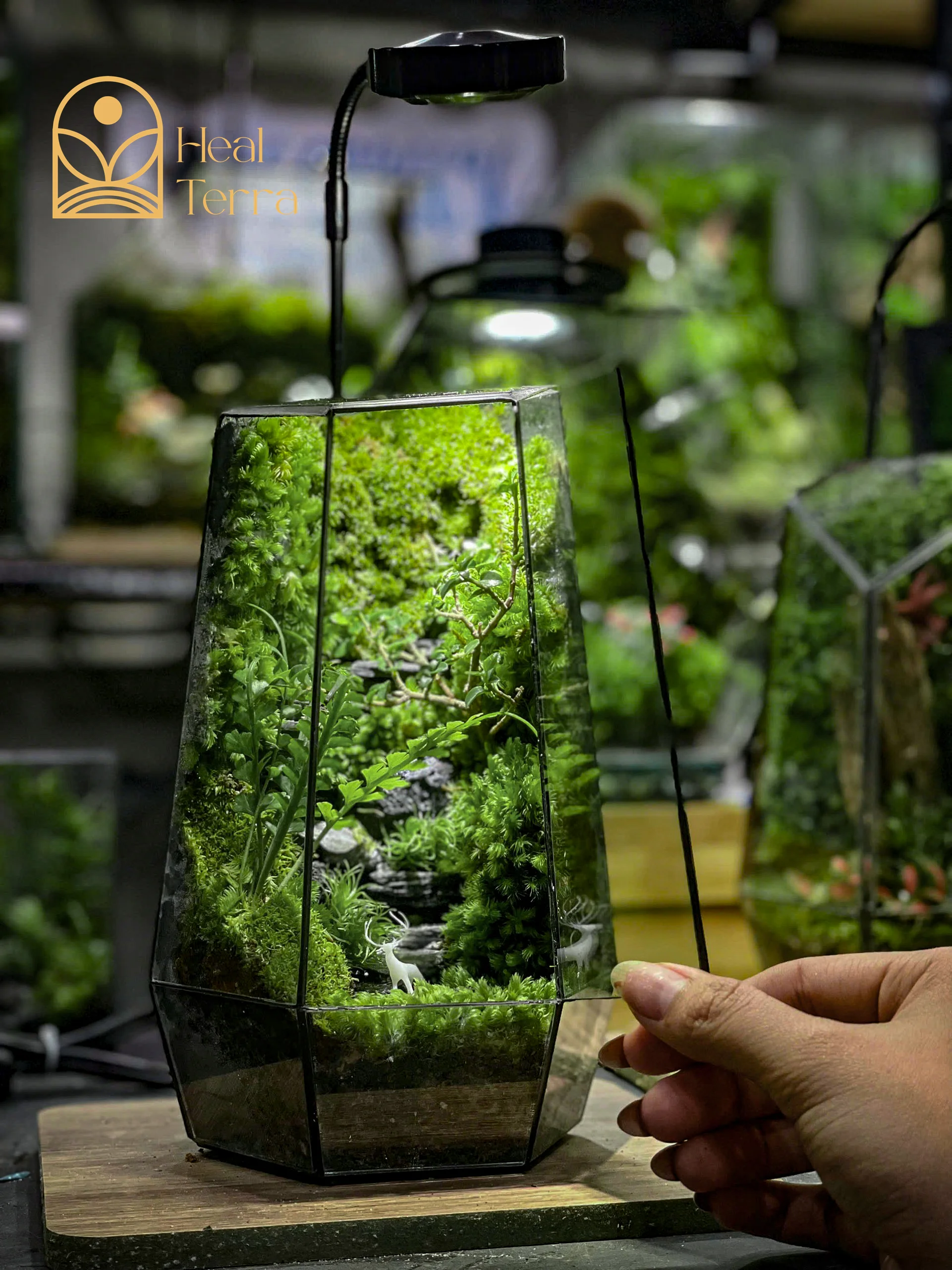 Giữa nhịp sống “nhanh như chớp”, Lộc Linh Sơn là một trạm dừng chân để bạn sống chậm lại. Đây không chỉ là một chiếc terrarium mini, mà là một lát cắt tâm linh của rừng già, nơi chú hươu nhỏ lặng lẽ đứng canh giữ giữa tầng rêu xanh mướt.